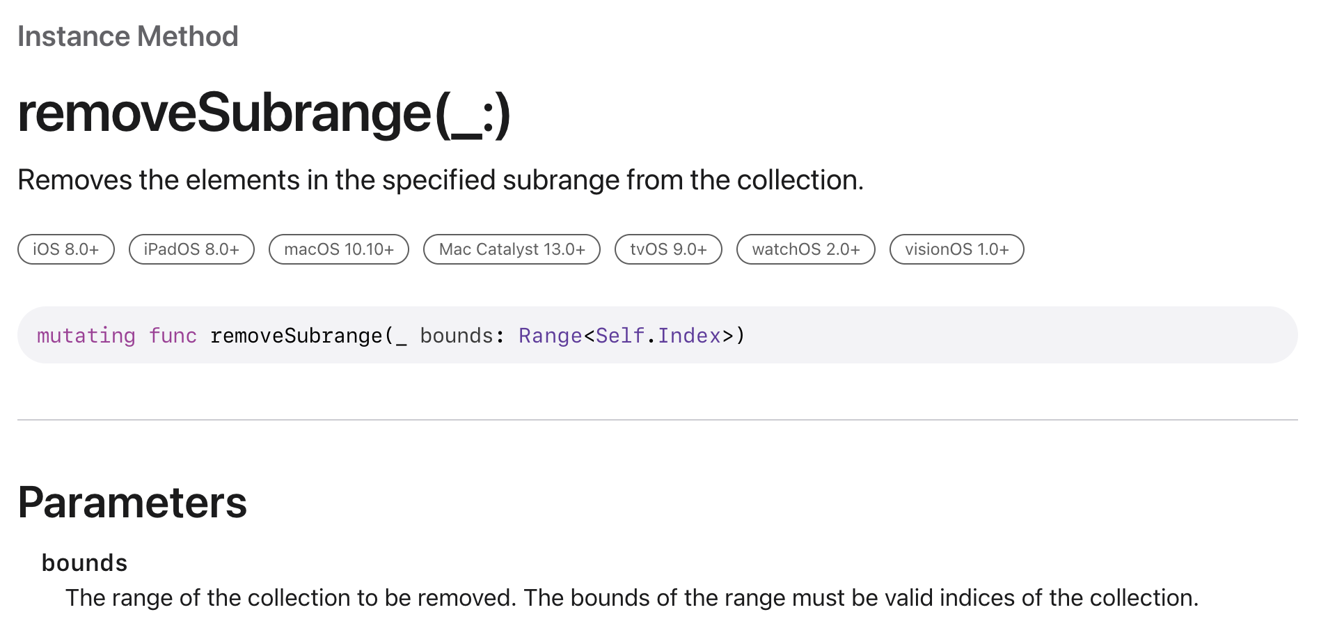 지정된 범위의 요소를 제거하는 메소드입니다.